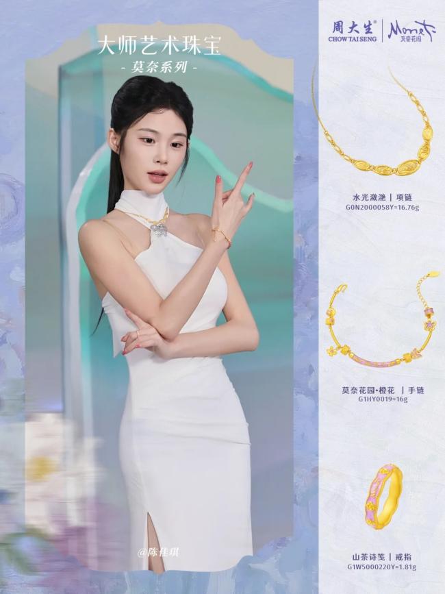 无忧达人,百万粉丝博主陈佳琪携莫奈系列“莫奈花园 ·橙花”“水光潋滟”“山茶诗笺”翩然而至,吸引在场无数目光。“莫奈花园·橙花”以莫奈名作《吉维尼艺术家花园》为灵感来源,巧妙提取画中橙花的独特形态,并融入其标志性的粉紫色调进行点缀。这种设计不仅让产品的视觉层次更加丰富,更注入了浓郁的艺术气息。“水光潋滟”设计灵感则源自莫奈的经典作品《睡莲》。在光影交错间,睡莲如同在水面轻盈舞动,仿佛在吟唱一曲光与水的协奏曲,将莫奈笔下的自然光影之美展现得淋漓尽致。“山茶诗笺”则汲取了莫奈画作中柔光流转的意境,让山茶花舒展生长。“山茶诗笺”层层绽放的花瓣宛如微光轻抚,诗意悄然流淌于每一处细节,将莫奈的光影艺术化作佩戴者身上的灵动之美。