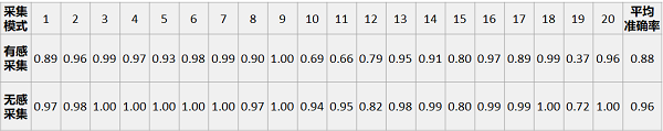 识别准确率更高:无感补录的平均准确率达96%,部分受试者更是满分1.0;而传统单一有感采集平均准确率仅88%,稳定性差距明显。