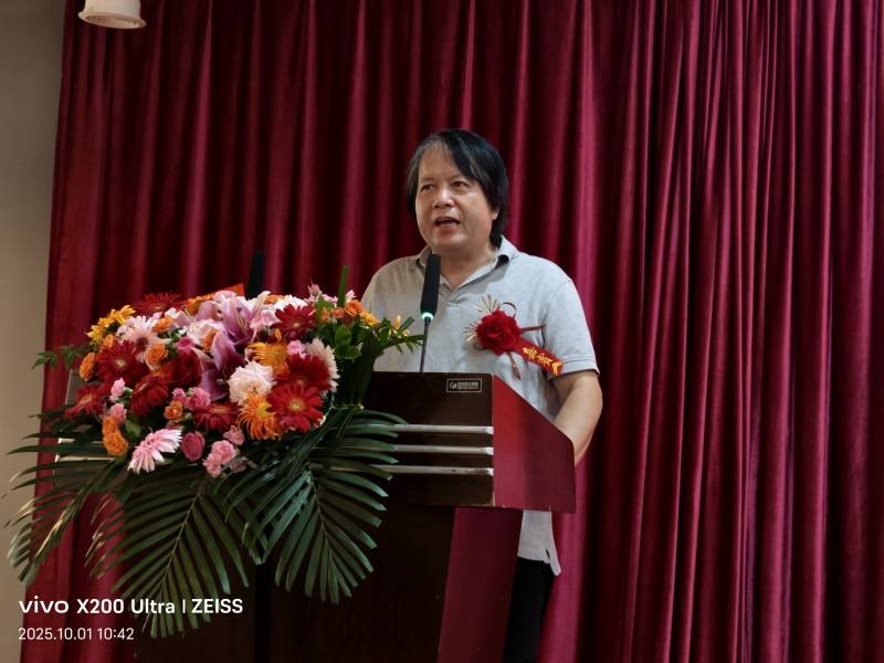 嘉宾致辞环节,各位代表结合自身领域与对孙长英艺术生涯的认知,分享感悟、传递敬意。首先登台的岩溶地质研究所原党委副书记李光辉,以“岁月与艺术同行”为核心致开幕词。他表示,在国庆佳节举办这场书画展,既是对祖国的祝福,也是对文化传承的践行,“孙长英女士作为九旬长者,不仅用笔墨书写艺术人生,更以坚韧品格诠释‘活到老、学到老’的精神,这份坚守值得我们每一个人学习,也为桂林文化事业发展注入温暖力量。”