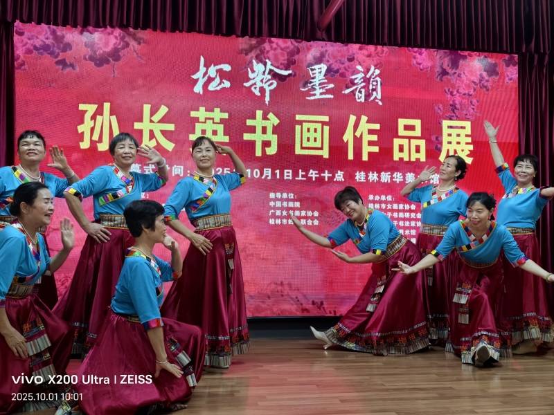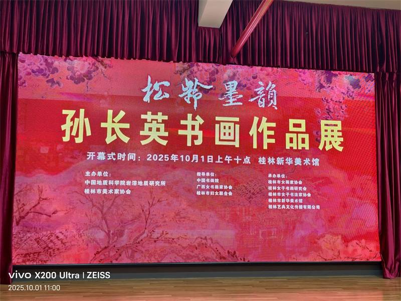 2025年10月1日,正值中华人民共和国第76个国庆节,举国欢庆之际,“松龄墨韵”孙长英书画作品展在桂林隆重开幕。本次展览由桂林市女画家协会牵头筹备,汇聚书画界百余位同仁共赴艺术之约,既以笔墨致敬祖国华诞,更以九旬艺术家的坚守与家风,为秋日桂林添注浓厚的文化暖意。