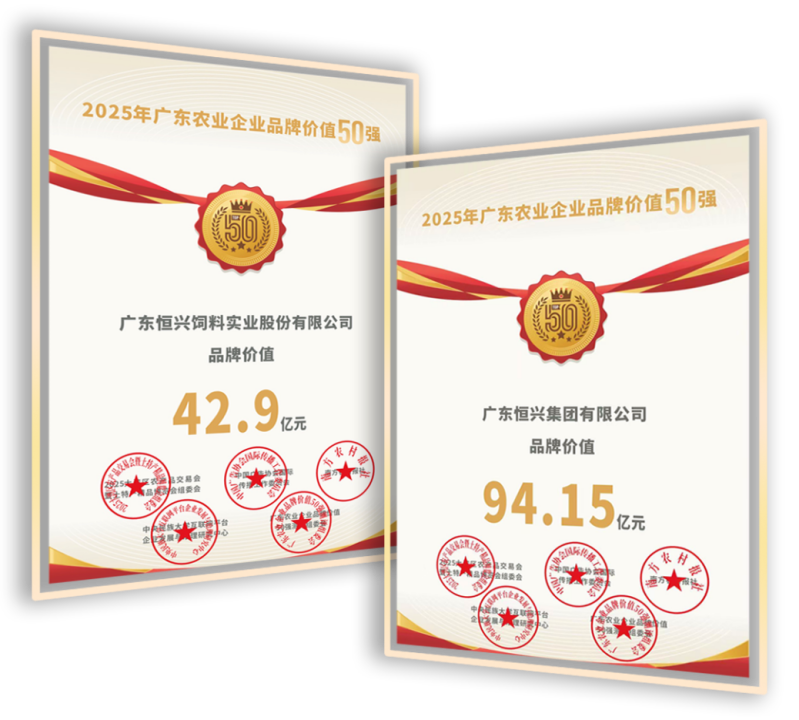 广东恒兴饲料实业股份有限公司荣获“农业产业化国家重点龙头企业”“高新技术企业”“改革开放40年·中国农业十大卓越贡献企业”“‘一带一路'国际合作先进饲料企业”“十佳水产动保企业”“中国虾业20强”“十大种业企业”“中国水产行业百强品牌价值榜”“广东企业500强”“国家水产种业阵型企业”“中国水产行业·十大贡献奖”“十大国际化品牌企业”等荣誉称号,并上榜广东省战略性产业集群重点产业链“链主”企业名单,被评为现代种业产业链“链主”企业。主营饲料产销、种苗繁育、动物保健及兽药、包装制品、国际贸易等业务。(信息来源恒兴股份官方网站www.gdhxgf.com)