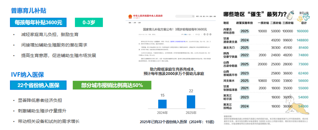 其一,政策红利持续加码。国家层面持续推进生育支持政策,辅助生殖技术逐步纳入医保、育儿补贴等政策落地,直接推动辅助生殖诊疗量稳步提升,进而带动相关耗材需求增长,为贝康产品销售提供了明确的政策支撑,行业需求端无忧。