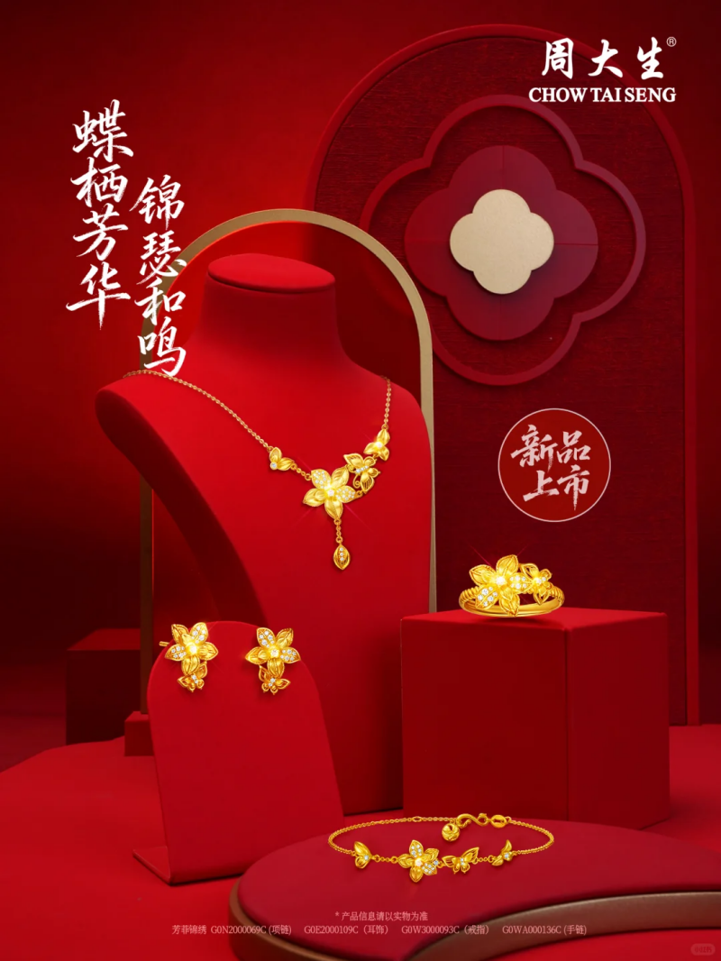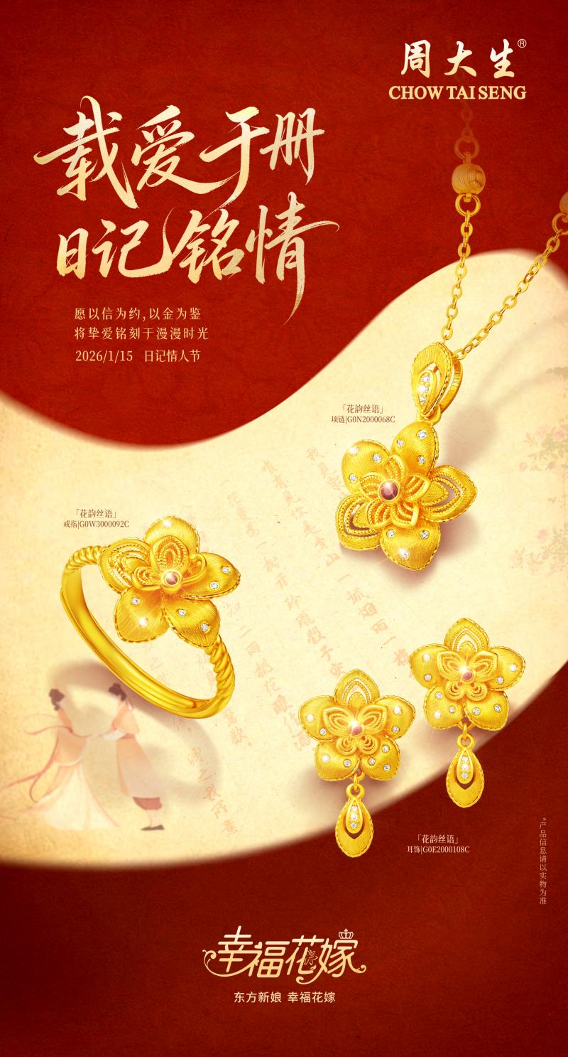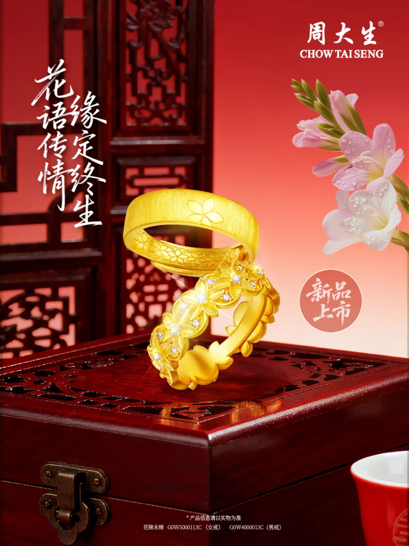 周大生愿做幸福婚恋的陪伴者,以黄金的永恒质地,以钻石的坚贞光泽,致敬每一份独一无二的爱情。愿幸福花嫁系列,陪伴东方新娘走向人生最美好的旅程。幸福承诺,花嫁为证。
