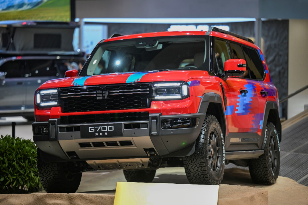本次车展,G700共创版同步亮相,以深度共创模式彰显品牌与用户的双向奔赴。作为最新的官方改装车型,新车搭载拓野云台底盘、越野AT胎、科曼高性能氮气减震等硬核配置,兼顾个性化与实用性。