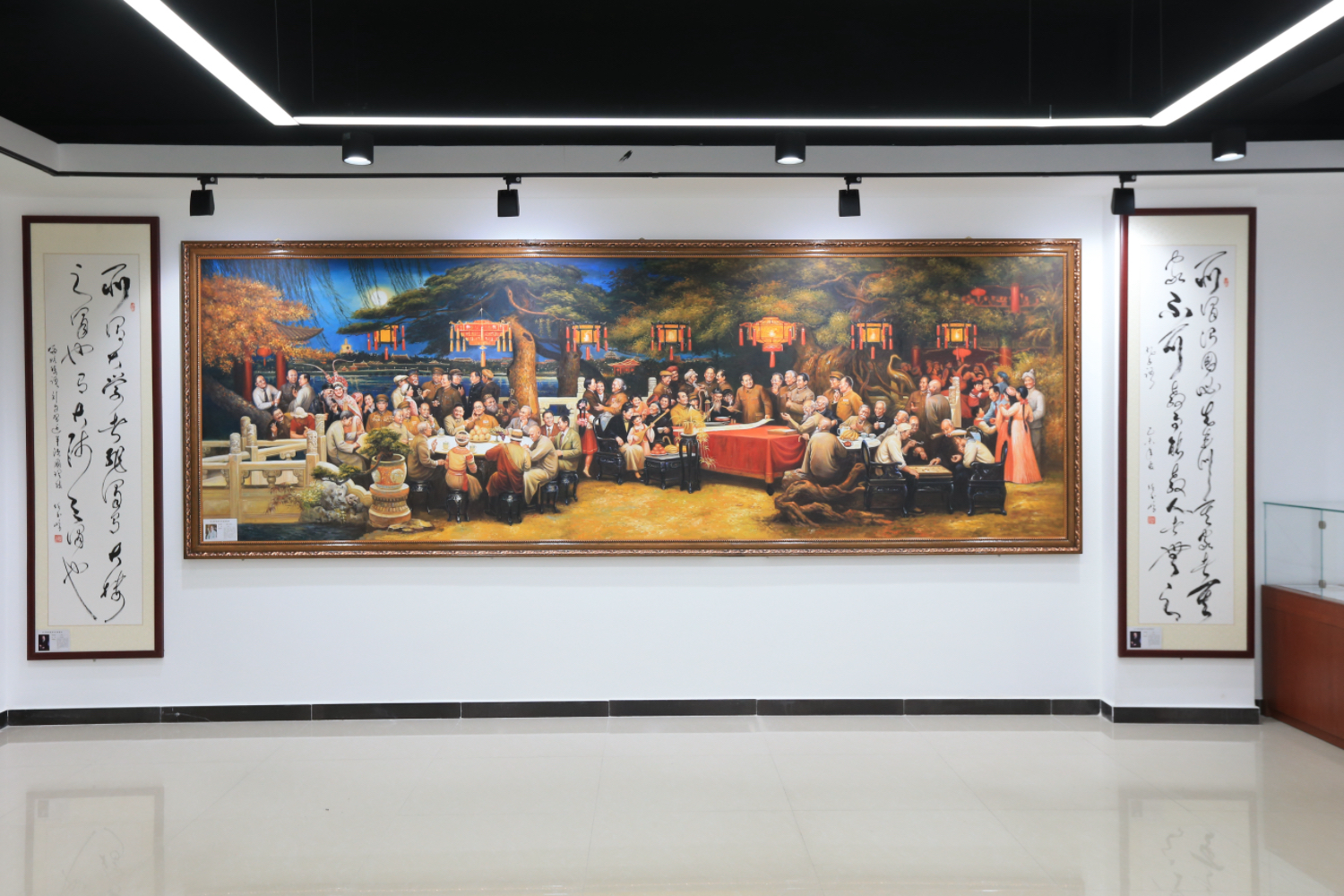 是这样,我为家乡驻马店展馆备下的收藏品和文物达数百件之多,涵盖国家20个,时空跨越四百年。其中包括沈周弟子八条屏以及弘一法师、潘天寿、张大千、任伯年、于右任、刘罗锅、袁世凯、冯国璋、沈鹏、欧阳中石、范曾、刘文西、郭沫若、赵朴初等名家众多书画作品。从艺术品种看,包括第一军刀、第一宝剑、地动仪、军舰模型、良宵美景、长征组画、钱币、粮票、像章、模型、标本、摄影、剪纸、堆绣、麦秸画、洛铁画、雕塑、石刻、古化石以及由我创作的毛主席百首诗词长卷、百鸟图、百个瓷瓶等等。