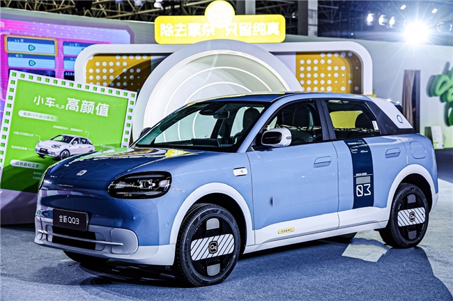设计上,全新QQ3秉持“智圆行方”的快乐哲学,融合圆的智慧与方的态度,打造舒展大气、细节动人的造型。车身采用超曲面设计(QUMO),贯穿前后的腰线光影如月光流动,配合0.643轴长比、2.39轮高比与3倍轮轴比,巧妙实现“小车身显大,大体量显柔”的伸缩量感美学。前脸延续QQ标志性悦动微笑格栅,搭配碳纤维纹理与时尚拼色后视镜,营造萌趣与科技交融的生动表情。内饰则从时尚T台汲取灵感,通过材质、光影与细节的精心编排,营造出兼具温馨感与未来感的移动生活空间。