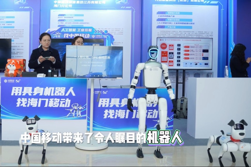 近日,2026海门人工智能大会在区人民政府展会大厅隆重启幕,行业翘楚齐聚一堂,共话人工智能发展新机遇。中国移动江苏公司南通分公司(以下简称“南通移动”)作为本地数字经济发展的中坚力量,携机器人、机器狗、AI三件套等多款重磅AI创新产品惊艳亮相,以沉浸式互动体验、硬核技术实力与优质服务保障,全方位展现AI与生活、工作场景的深度融合成果,赢得现场领导、嘉宾及观众的高度认可与广泛赞誉,成为展会核心亮点之一。